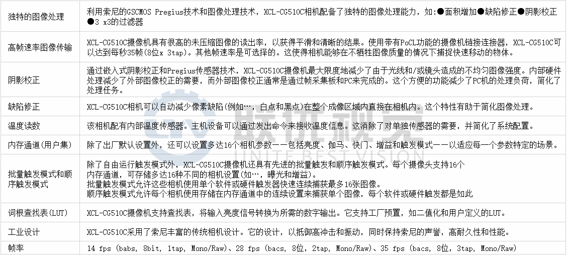 ●XCL-CG510C(彩色)結(jié)合了索尼技術(shù)的優(yōu)點(diǎn),具有較高的色彩還原度,在工業(yè)視覺和非制造視覺市場中都得到了優(yōu)化。