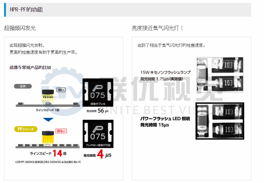 功率快閃照明PF系列,實現(xiàn)了“超強(qiáng)閃光燈發(fā)光” 和漫射的光環(huán)類型,以實現(xiàn)矩最大照度250萬LX,向速度,提高了測試的準(zhǔn)確性對應(yīng)于更換氙閃光燈的-dedicated通過電源微調(diào)發(fā)光定時, 可以精確地調(diào)節(jié)相機(jī)快門的發(fā)光應(yīng)用示例:食品/化學(xué)制品的外觀檢查/劃痕/污垢檢查/色差檢查等。
