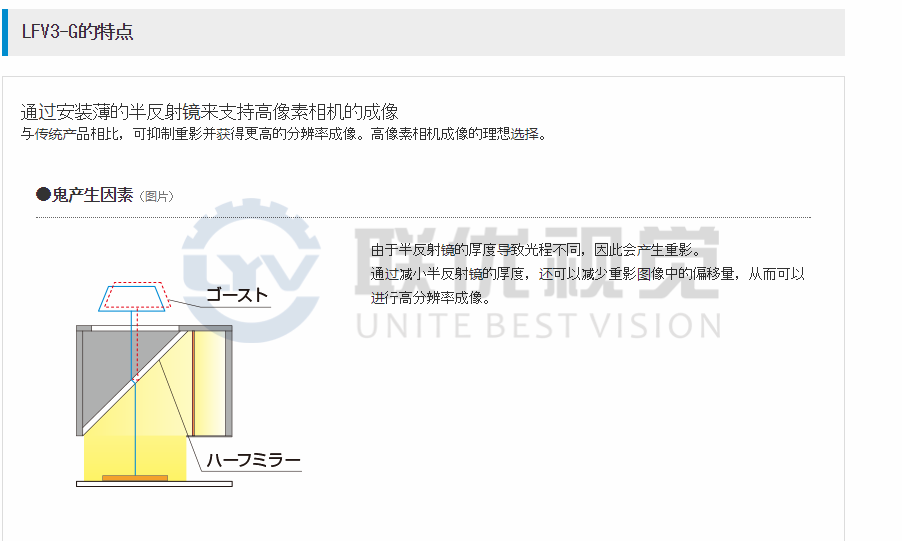 同軸照明通過(guò)采用薄型半反射鏡來(lái)抑制重影。與傳統(tǒng)產(chǎn)品相比,通過(guò)提高輸出和均勻性,可以支持高像素相機(jī)的成像。