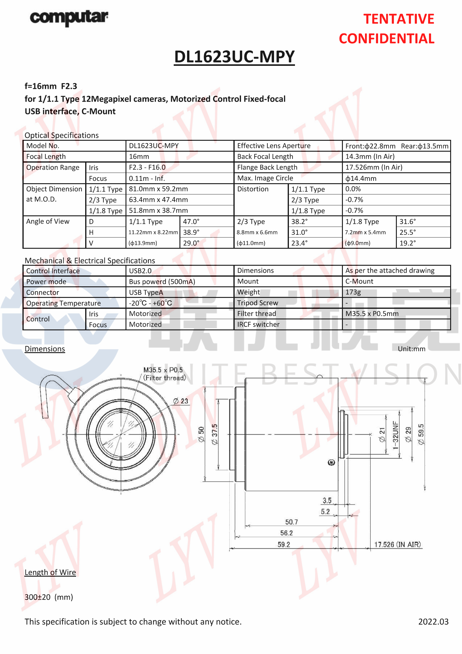 全新電動(dòng)鏡頭,可通過(guò) USB 供電和控制(適用于 I2C 版本)
