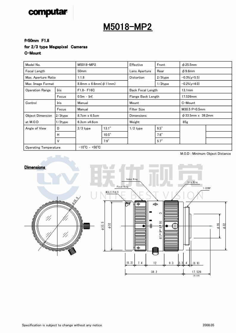 ●具有焦點和光圈鎖定調(diào)節(jié)鏍釘;